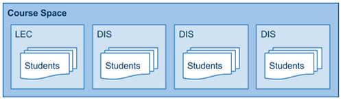 Single section course spaces sequester students, content and course activities for each section into an individual course space. Course materials can be copied between course spaces, but materials are not shared.